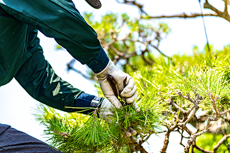 お客様のお宅へご訪問し、樹木の形を整えたり、風通しを良くしたり、手入れをします。